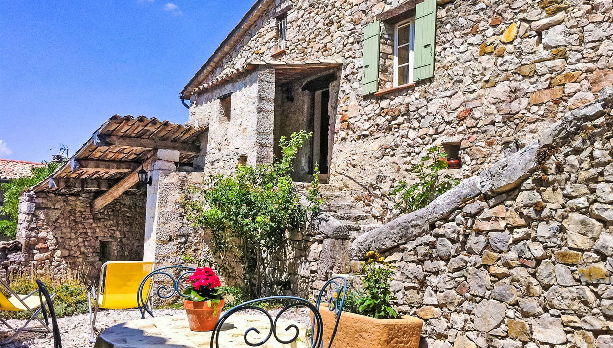 Besignan 11 km from Buis les Baronnies: The stone townhouse "Maison du Brun" is in a hamlet of 4 houses surrounded by trees. In front of the house, there is a barn. Terraced house "Du Brun", surrounded by trees. In a hamlet with 4 houses, outside the resort, 5 km from the centre, in a secluded, quiet position, in the countryside. Private: well-kept garden with wildlife garden and flowers, parking on the premises. Shop 11 km, grocery 5 km, supermarket 11 km, restaurant 5 km, bus stop "Mirabel-aux-Baronnies Mairie" 29 km, outdoor swimming pool 11 km. Riding stable 3 km. Nearby attractions: Via ferrata, Mont Ventoux 50 km. Hiking paths: le Lubéron. Please note: car recommended.