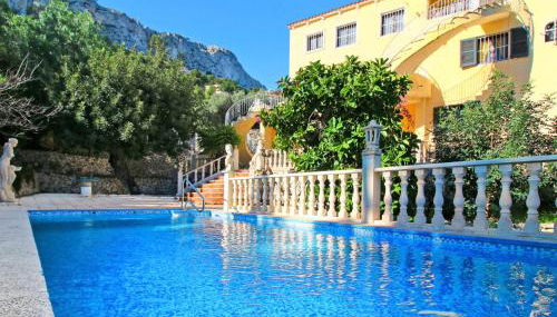 House "Richelieu". In the district of Maryvilla 4 km from the centre of Calpe, 66 km from the centre of Alicante, 125 km from the centre of Valencia, 2 km from the sea, 2 km from the beach. Private: property 1'200 m2 (fenced) with wildlife garden and trees, swimming pool (8 x 4 m, seasonal availability: 01.Jun. - 30.Sep.). Outdoor shower, barbecue, parking (for 3 cars) on the premises. Shop 3 km, supermarket 4 km, bus stop 3 km, sandy beach "Puerto Blanco" 2 km (small). Nearby attractions: Terra Mítica 35 km, Aqualandia 25 km, Benidorm Palace 25 km. Hiking paths: Peñon de Ifach 7 km. Please note: car recommended. Part of the house is closed and unoccupied.