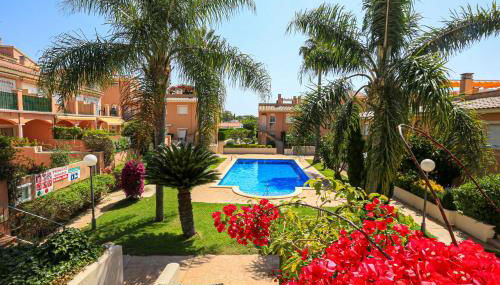 Guests can enjoy the outdoor swimming pool and garden at the apartment.