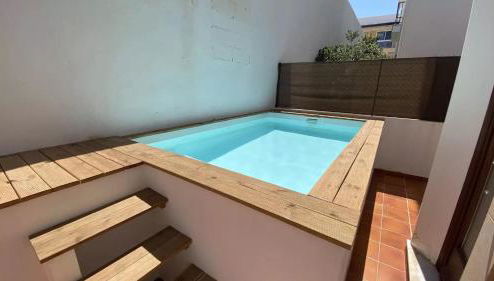 Guests can enjoy the outdoor swimming pool at the vacation home.