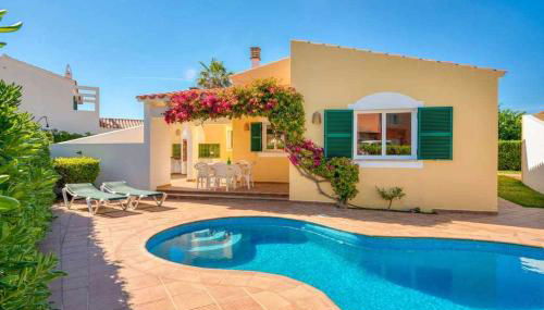 Just a 12-minute walk from Cala Santandria Beach and 1.2 miles from Cathedral of Minorca, Linardo3 | Villa con piscina y aire acondicionado features accommodations in Sa Caleta with a garden.