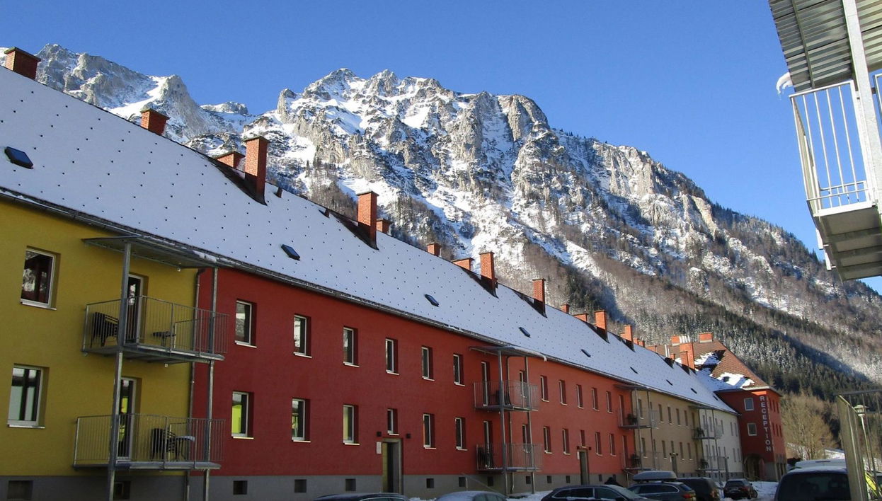 Here, a historic miners' settlement has been carefully adapted for tourism. Modern, comfortable resort "Erzberg Alpin by Alps Resorts". 3 km from the centre, in a sunny, elevated position, 1.5 km from the lake, 11 km from the skiing area. For shared use: large garden with plants and trees, lawn for sunbathing. Children's playground, planted inner courtyard. In the complex: reception, WiFi, central heating system, washing machine (for shared use, extra). Breakfast and half board (extra). Parking at the house. E-charging station. Supermarket 1.5 km, restaurant 200 m, diving center 6 km, indoor swimming pool 3 km, lake Leopoldsteiner See 1.5 km. Sports centre 100 m, skisport facilities 11 km, cross country ski track 6 km, ice rink 1.5 km. Nearby attractions: Abenteuer Erzberg 5 km, Naturpark Gesäuse 12 km, Schaubergwerk Radmer 17 km. Well-known ski regions can easily be reached: Skigebiet Präbichl 12 km. Hiking paths: Hochschwab. Please note: car recommended. The photo is just an example. Admission to the Vitalbad Eisenerz + 1 city tour per stay FREE for all guests! The Vitalbad closed in September for renovation. Erzberg Alpin guest card included.