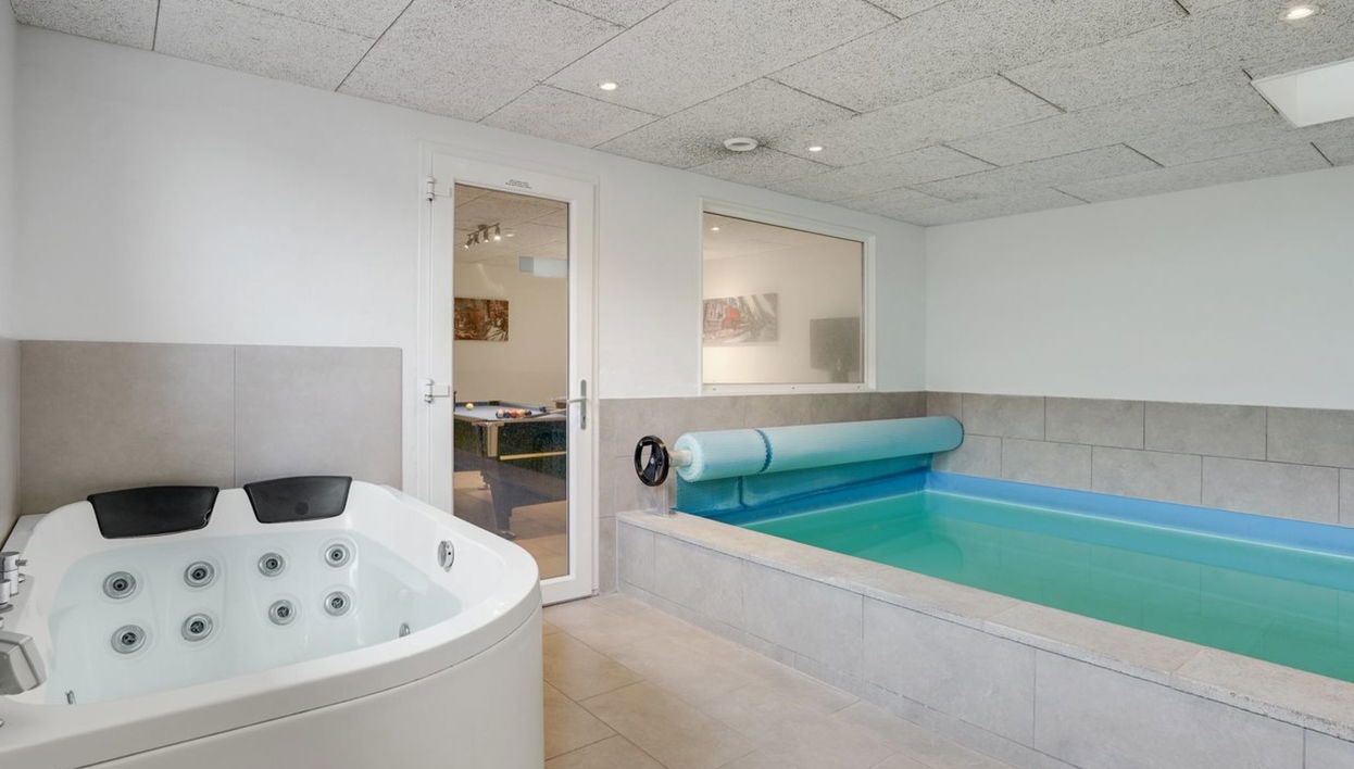 Single-family house, built in 2009. 200 m from the sea. Private: natural state property 850 m2, indoor pool (2 x 7 m, 2'0.3 m2, depth 120 - 120 cm). Terrace (40 m2), barbecue, children's playground (swing). In the house: sauna, washing machine, tumble dryer. Parking at the house. Grocery 4 km. Golf course 8 km. The owner does not accept any youth groups.