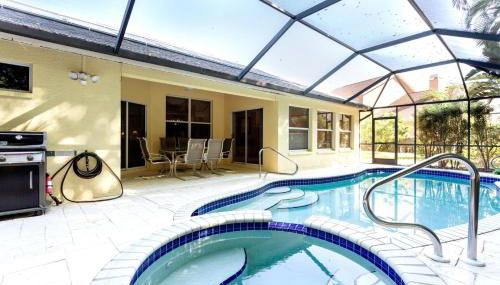 12 miles from Delnor-Wiggins Pass State Park in Estero, SERENE & ATTRACTIVE 3BR HEATED POOL/SPA HOME features accommodations with access to a hot tub and fitness center.