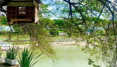 Guests can swim in the outdoor swimming pool, go fishing, or relax in the garden.