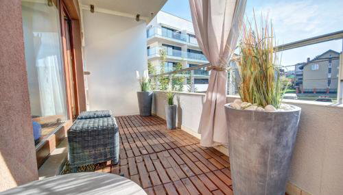 HelApart - Helska Villa provides guests with a terrace, inner courtyard views, a seating area, a flat-screen TV, a fully equipped kitchenette with a fridge and a stovetop, and a private bathroom with bath. Kitchenware and kettle are also featured. At the apartment complex, all units include bed linen and towels.