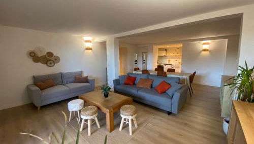 Featuring a terrace and pool views, the spacious apartment includes 3 bedrooms, a living room, flat-screen TV, an equipped kitchen, and 2 bathrooms with a bath and a shower. Towels and bed linen are available in the apartment. The property has an outdoor dining area.
