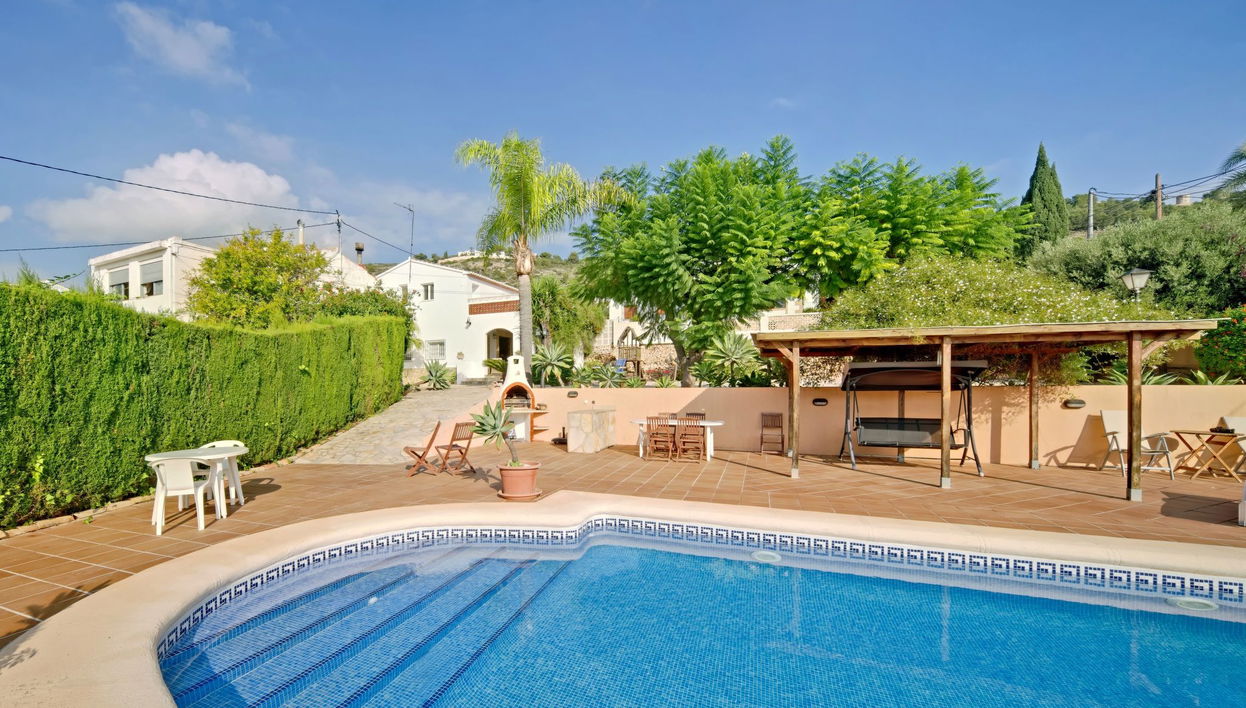 Cosy, comfortable house "Germaine", 2 storeys. In the district of Putxol - Javea, A pie del Puerto,Casco Histórico, in a quiet, sunny position, 1.4 km from the sea, 1.4 km from the beach. Private: swimming pool angular (11 x 5 m, depth 40 - 200 cm, seasonal availability: 01.Jan. - 31.Dec.) with internal staircase and salt-electrolysis pool-cleaning system. Pool house with shower and WC, pergola, garden furniture, barbecue house, parking (for 3 cars). Supermarket 1.2 km, restaurant 500 m, café 700 m, bus stop "Estacion de Autobuses" 1.5 km, sandy beach "El Arenal" 3 km, shingle beach "Playa de la Grava Port Javea" 1.4 km. Sports harbour 1.4 km, surf school 1.4 km, sailing school 1.4 km, tennis 3 km. The owner does not accept any youth groups.