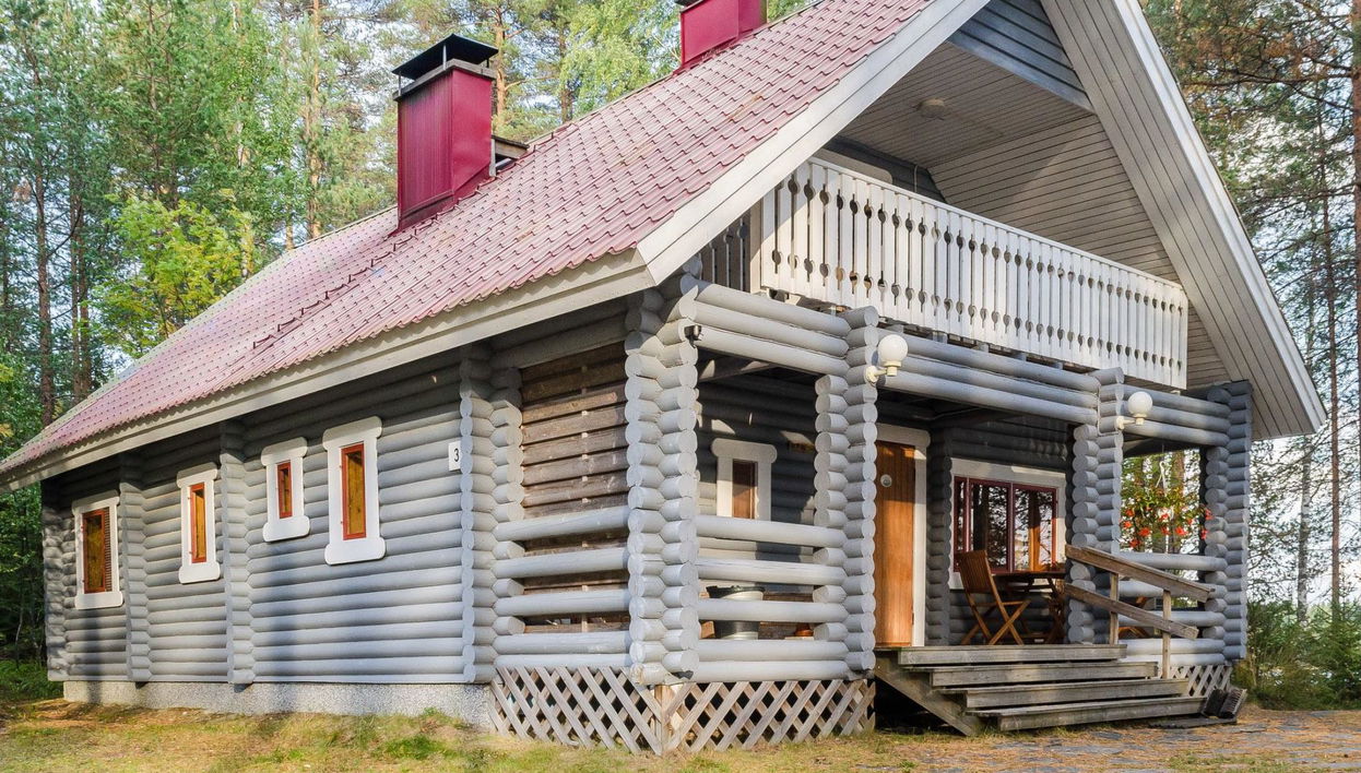70 km north of Joensuu, Lake Savijärvi (2,535 km2) 20 m, own shore, deep and rocky bottom, own boat and jetty (to swim only from jetty). Log cottage 1997, kitchen-living room, bedroom with double bed, bedroom with two beds, sleeping gallery with four beds, changing room, washing room, sauna (wood heated stove), terrace.