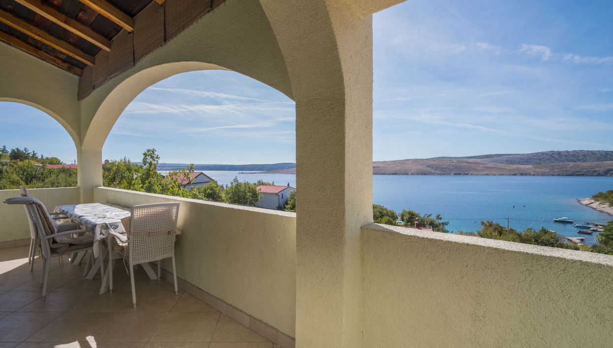 2-room apartment 80 m2 on 3rd floor. Living/dining room with satellite TV and air conditioning. Exit to the terrace. 1 room with 1 french bed (160 cm, length 200 cm). Exit to the terrace. 1 room with 2 beds (90 cm, length 200 cm). Open kitchen (4 hot plates, oven, microwave, freezer, electric coffee machine). Shower/bidet/WC, sep. WC. No heating option. Terrace 36 m2, terrace 14 m2, roofed. Terrace furniture. Very beautiful view of the sea. Facilities: Internet (WiFi, free). Parking (1 car) at the house. Please note: private entrance.