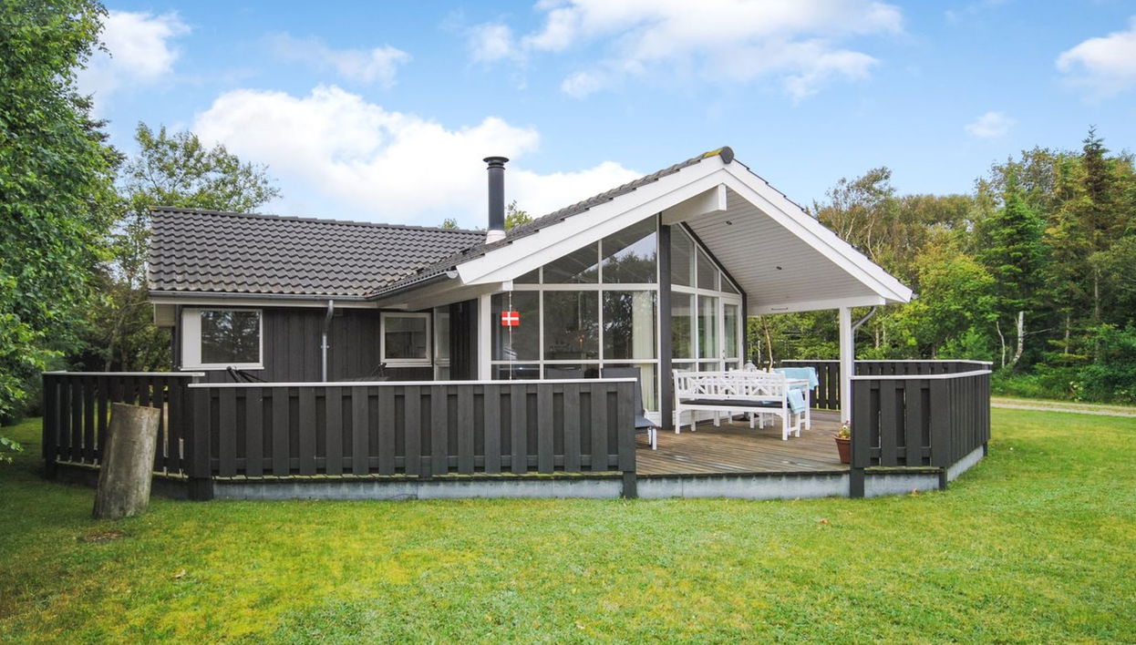 "Evelina" - 150m to the fjord", 3-room house 78 m2. Object suitable for 6 adults + 1 child. Living room with TV, radio and CD-player. 1 room with 1 double bed. 1 room with 1 double bed. 1 room with 1 double bed. Kitchen (oven, dishwasher, 4 ceramic glass hob hotplates, microwave, freezer). Shower/WC. Terrace 20 m2, roofed. Facilities: children's high chair, baby cot. Internet (WiFi). Please note: non-smokers only. 820-005730