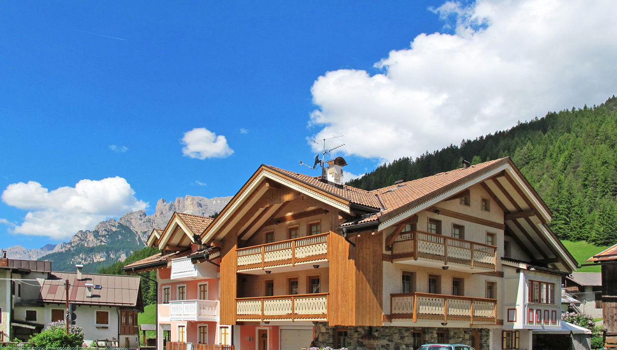 Apartment house "Giovanni". 9 apartments in the property. In the district of Fontanazzo 1.3 km from the centre of Campitello, 4.5 km from the centre of Canazei, 45 km from the centre of Bolzano, 20 km from the lake. Parking on the premises. Grocery 1.3 km, restaurant 1.3 km, bus stop 150 m, railway station "Bolzano" 45 km, indoor swimming pool 4 km. Golf course (9 hole) 18 km, walking paths from the house 100 m, ski lift 2.5 km, gondola lift 2.5 km, ski bus stop 150 m, cross country ski track 50 m, children's playground 200 m. Well-known ski regions can easily be reached: Col Rodella (Sella Ronda) 2.5 km, Buffaure 6.4 km. Well-known lakes can easily be reached: Lago di Carezza 20 km. Hiking paths: Sentiero Gruppo del Sasso Lungo 1.5 km, Sentiero Gruppo del Catinaccio 1.5 km. Please note: the owner lives in the same residence.