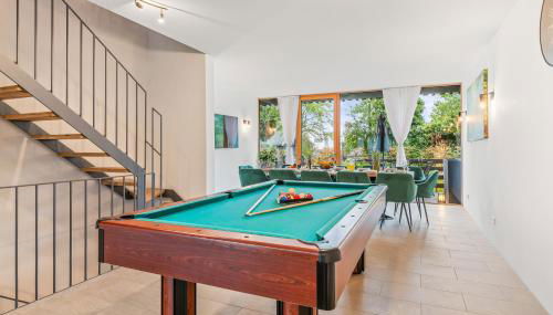 Bodensee Penthouse 23i - Seesicht - Billiard - Tischkicker - BBQ - Air Hockey - Panorama Exklusive is a recently renovated apartment in Öhningen where guests can make the most of the garden and barbecue facilities. This beachfront property offers access to a balcony, a pool table, free private parking, and free Wifi. The property provides a children's playground and outdoor furniture.