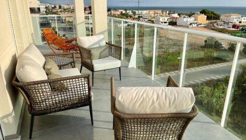 Providing a garden, Beautiful penthouse with pool and wonderful beach view provides accommodations in Oliva. This beachfront property offers access to a balcony and free Wifi. The apartment offers an outdoor swimming pool and an elevator.