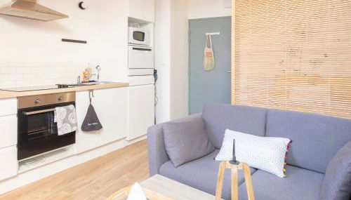 Studio Tout Confort près Ancenis features 1 bedroom, a fully equipped kitchen with a dishwasher and an oven, a washing machine, and 1 bathroom with a hair dryer. A flat-screen TV with streaming services is featured. The apartment offers bed linen, towels, and laundry service.