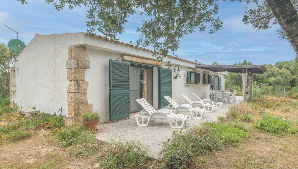 Cottage "Stazzu Mendola", 20 m a.s.l., detached. 2 km from the centre of Porto Pollo, 4.5 km from the centre of Palau, 1.7 km from the sea, in the countryside. Private: natural state property 3'000 m2 (fenced) with wildlife garden and trees, meadow. Outdoor shower. 50 m long bumpy motor access to the house. 3 m footpath to the house. Parking (for 3 cars) on the premises. Supermarket 4 km, bus stop 2 km, sandy beach 1.7 km. Please note: car recommended.