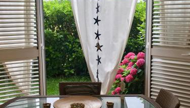 Offering a terrace and garden views, the spacious apartment includes 2 bedrooms, a living room, flat-screen TV, an equipped kitchen, and 1 bathroom with a walk-in shower and a bidet. A private entrance leads guests into the apartment, where they can enjoy some wine or champagne and fruit. The property has an outdoor dining area.