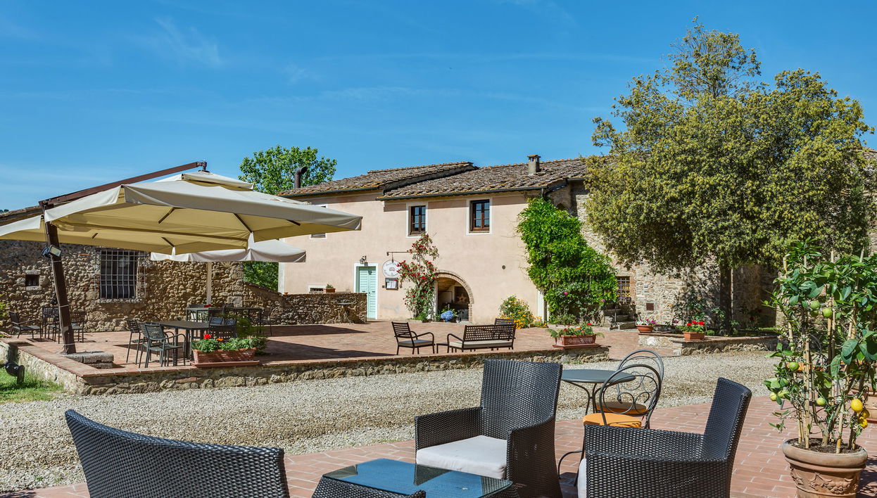 Very beautiful, cosy, comfortable country house "Antico Borgo San Lorenzo", from the 11st century, renovated in 1998, surrounded by meadows, fields and vineyards. 5 houses in the residence. 10 apartments in the residence. 4 km from the centre of Colle di Val d'Elsa, 14 km from the centre of San Gimignano, 24 km from the centre of Siena, in a secluded, sunny position on top of a hill, 70 km from the sea, 70 km from the beach, in the countryside. For shared use: property 5 ha, garden (not fenced) with plants and flowers, meadow, swimming pool (16 x 8 m, depth 140 - 150 cm, seasonal availability: 15.Apr. - 31.Oct.). Outdoor shower, table tennis, terrace, barbecue, children's playground. In the house: table football, washing machine, tumble dryer (for shared use, extra), bicycle rental. 1.2 km long motor access (via unmade road). Roofed, parking on the premises. Grocery 4 km, supermarket 4 km, bakery 3 km, bus stop 1.5 km, railway station "Colle di Val d'Elsa" 4 km, sandy beach "Cecina Mare" 70 km, indoor swimming pool 6 km. Walking paths from the house 100 m. Nearby attractions: Monteriggioni 12 km, Certaldo 25 km, Volterra 32 km, Firenze 60 km, Montalcino 66 km. Please note: car recommended. Suitable for families, baby equipment (included). Suitable for events. On request: airport transfer to the holiday accommodation. Local sale of farm products. All houses/apartments are individually designed/furnished.