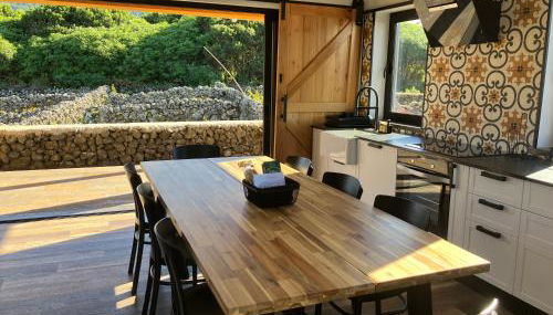 Providing barbecue facilities, Casa da Vinha Escondida AL provides accommodations in Biscoitos. Housed in a building dating from 2022, this vacation home is a 13-minute walk from the Biscoitos Beach.