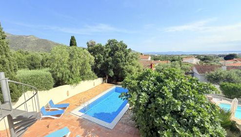Guests can enjoy the outdoor swimming pool and garden at the villa.