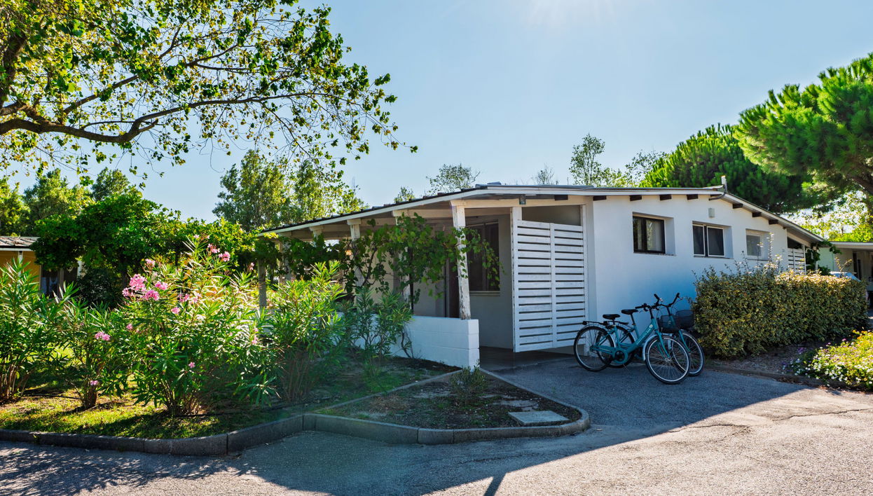 Large, child friendly holiday village "Rosapineta Sud". 260 houses in the resort. 400 m from the centre of Rosolina Mare, 22 km from the centre of Chioggia, 70 km from the centre of Venezia, 100 m from the sea, 100 m from the beach, direct access to the beach. For shared use: property 6 ha (fenced) with plants and trees, 2 swimming pools (25 x 11 m, 250 m2, seasonal availability: 23.May. - 12.Sep.). Children's pool, slide, outdoor shower, hot tub, table tennis, beach volleyball, barbecue, children's playground. In the complex: reception, restaurant, WiFi, fitness room, table tennis, shopping facilities, kiosk, washing machine (for shared use, extra), bicycle rental. Half board possible (extra). Parking at the house on the premises. E-charging station. Supermarket 50 m, bus stop "Rosolina" 10 km. Golf course (18 hole) 27 km. Nearby attractions: Giardino Botanico di Porto Caleri 5 km, Parco Naturale 'Delta del Po', Venezia 70 km. Please note: entertainment. Suitable for families. Obligation to wear bathing caps. Beach service: 2 sun loungers and 1 parasol per bungalow/mobile home are available on the beach throughout the season.