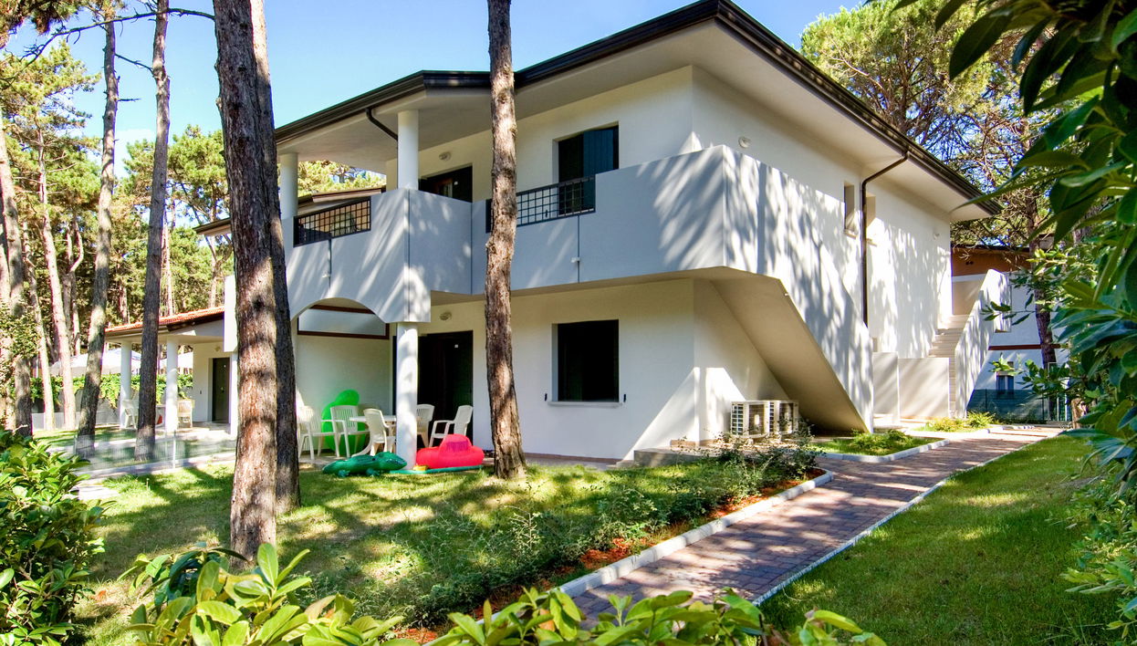 Apartment block "Villa Angela", 2 storeys. 7 apartments in the property. In the district of Bibione-Lido del Sole 1.3 km from the centre of Bibione, 13 km from the centre of Lignano, 100 km from the centre of Venezia, 300 m from the sea. For shared use: property (fenced), beautiful garden with trees. Grocery 100 m, restaurant 60 m, bus stop 450 m, railway station "Latisana (Milano-Venezia-Triest)" 21 km, sandy beach 300 m, thermal baths "Bibione Thermae" 1.1 km. Golf course (18 hole) 10 km. Nearby attractions: Oasi Naturalistica Val Grande - Bibione. Beach service: During summer season 1 parasol and 2 deck-chairs per apartment included in the price.