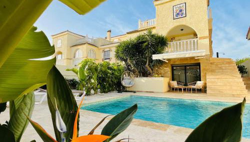 Casa Azure is located in Gran Alacant, just 10 miles from Alicante Train Station and 20 miles from Alicante Golf Club. This property offers access to a balcony, free private parking, and free Wifi. The pool features a fence and mountain views.