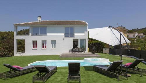 Chillout House with heated pool 29 C Sea & Mountain view is a recently renovated villa in Santa Susanna where guests can take a dip in the outdoor swimming pool and make the most of the free Wifi, private beach area, and open-air bath. There's a restaurant and guests can enjoy the water park. Parking on-site is available, and the villa also offers car rental for guests who want to explore the surrounding area.