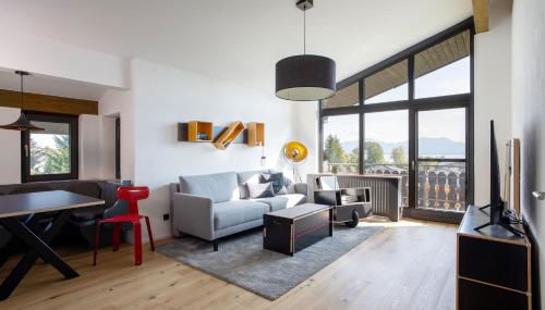Designer-Oberstüberl mit Seeblick auf den Chiemsee & Alpenpanorama is located in Seebruck, just 7.1 miles from Herrenchiemsee and 20 miles from Max Aicher Arena. This property offers access to a balcony and free private parking.