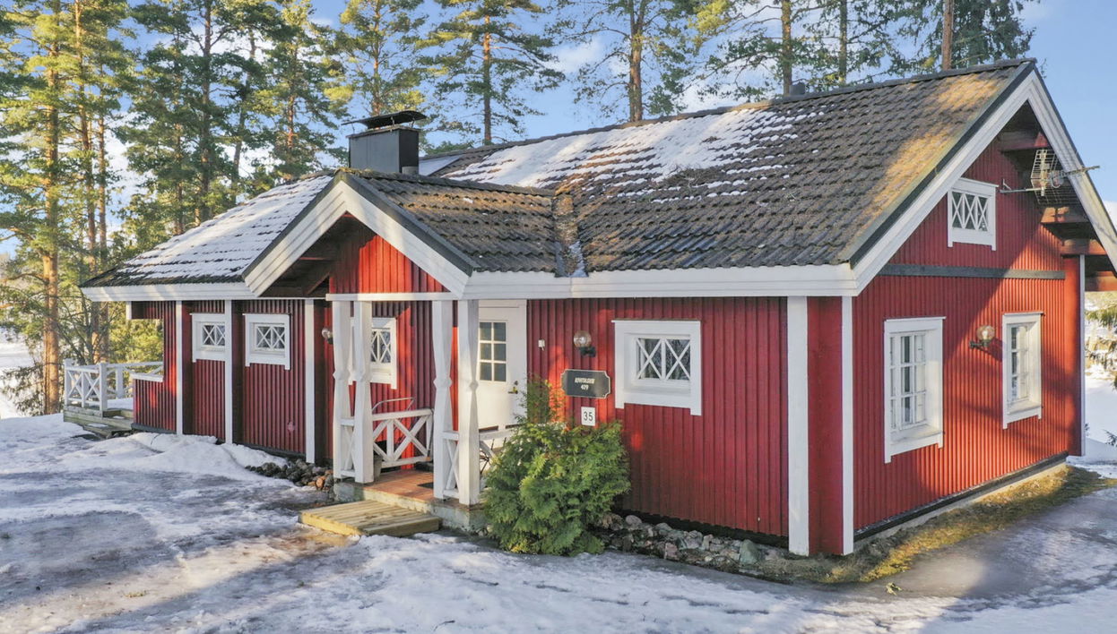 Built in 1992 on the shore of Lake Hirsjärvi, the cottage has 2 bedrooms, each with 2 beds. Living room/dining area, toilet/shower room. There are 2 extra beds in the living room. Access to the sauna via the terrace, dressing room. Wood-fired stove, shower in the steam room. Partially covered terrace for evening sun.