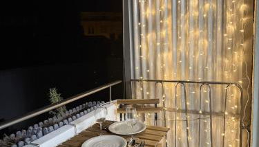 All units comprise a seating area with a sofa, a dining area, and a fully equipped kitchen with various cooking facilities, including a fridge, a stovetop, and kitchenware. The apartment complex offers certain units with inner courtyard views, and all units include a balcony. At the apartment complex, each unit comes with a private bathroom and bed linen.
