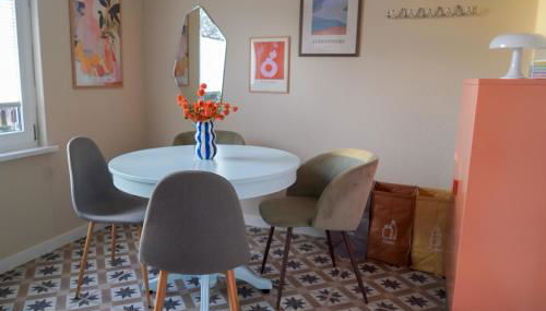 The apartment consists of 1 bedroom, a living room, a fully equipped kitchen with a dishwasher and a coffee machine, and 1 bathroom with a shower and slippers. Towels and bed linen are available in the apartment. The property has an outdoor dining area.
