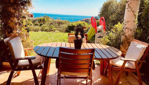 Panoramic Sea View Villa in private residence with pool includes 3 bedrooms, 2 bathrooms with a bidet and a bath, a seating area, and a fully equipped kitchen with an oven. Guests can take in the views of the sea from the patio, which also has outdoor furniture. The accommodation has a fireplace.