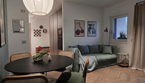 The apartment provides guests with a balcony, quiet street views, a seating area, a flat-screen TV, a fully equipped kitchen with a dishwasher and a microwave, and a private bathroom with walk-in shower and bathrobes. A fridge, a stovetop, and kitchenware are also featured, as well as a coffee machine and a kettle. At the apartment complex, each unit comes with bed linen and towels.