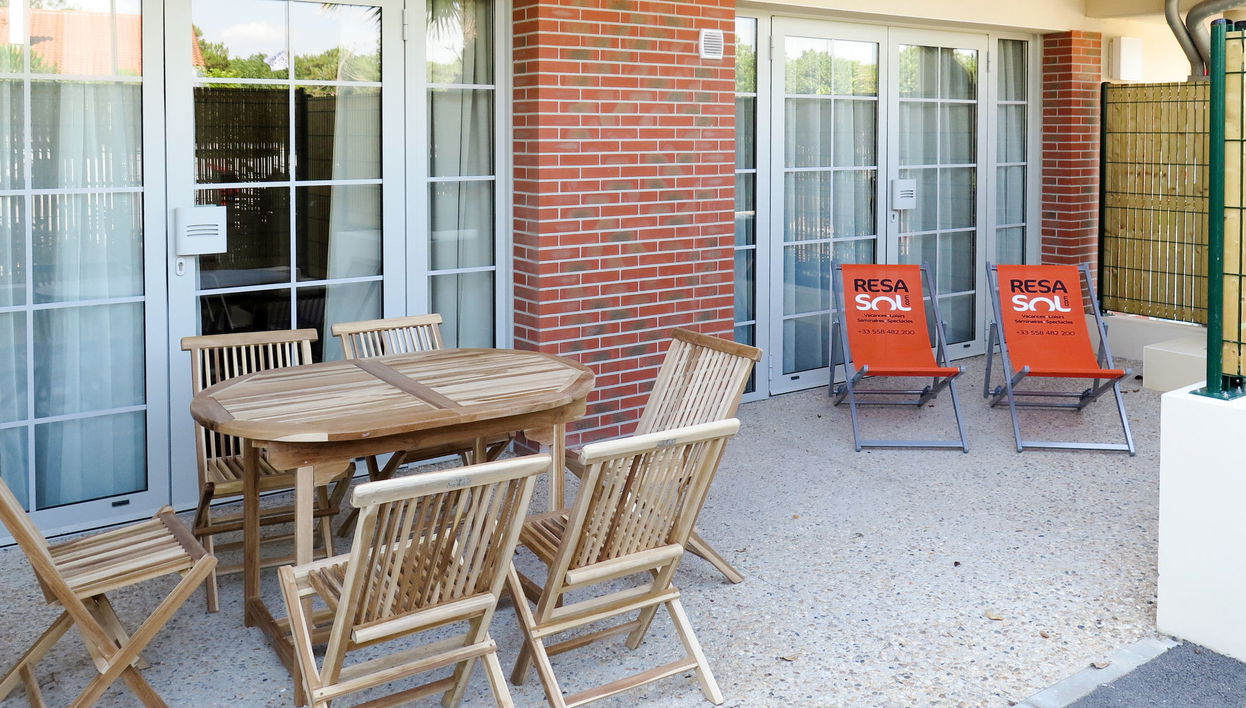 Residence "Les Sables d’Or", 3 storeys, built in 2016. 51 apartments in the residence. 900 m from the centre of Vieux-Boucau, 8.5 km from the centre of Soustons, 20 km from the centre of Capbreton, in a central position, 350 m from the sea. For shared use: swimming pool (16 m2, seasonal availability: 01.Apr. - 15.Sep.). Unconventional pool shape. Outdoor shower, hot tub. In the complex: fitness room, lift. Breakfast possible (extra). Communal covered parking, public parking on the road. Shop 50 m, supermarket 2 km, bus stop "Eglise (3)" 1.5 km, sandy beach 350 m, bathing lake "Lac Marin de Port d'Albret" 1 km. Golf course (18 hole) 9 km, tennis 750 m. The owner does not accept any youth groups. Please note: the photograph shows a typical example. The holiday properties may differ in living space, floorplan, equipment and furnishing.
