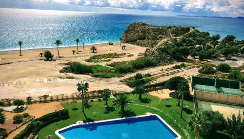 Top-Floor Beachfront Apartment with Parking, Pool, & Spacious Sea-View Balcony offers accommodations in Villajoyosa, a few steps from El Paraiso Beach and 10 miles from Terra Natura.