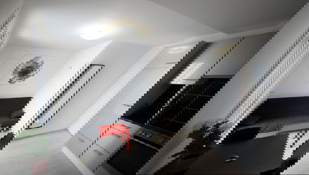 Make yourself comfortable in this apartment, featuring a kitchen with an oven and a microwave.