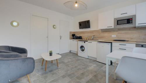 Cet appartement en rez-de-chaussée comporte 1 chambre, une télévision à écran plat, ainsi qu’une cuisine entièrement équipée avec un réfrigérateur, un four, un lave-linge, un micro-ondes et une plaque de cuisson.