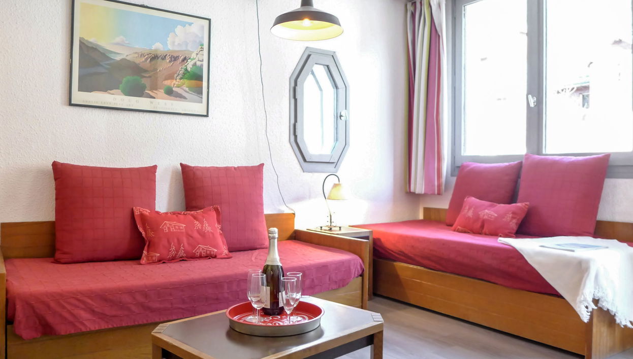 Apt 2 pièces 28 m2 au 2ème étage. Salle à manger avec 2 lits (80 cm, longueur 190 cm), TV. Sortie sur le balcon. Alcôve avec 1 grand-lit (140 cm, longueur 190 cm). Coin cuisine (4 plaques de cuisson, lave-vaisselle, bouilloire électrique, micro-ondes, cafetière électrique). Salle de bains, WC séparé. Chauffage électrique. Petit balcon, situation sud. Belle vue sur les montagnes. A disposition: Internet (Connexion WIFI, en sus). Veuillez noter: pas de parking. TV seulement FR. Détecteur de fumée. Au lieu d'une chambre fermée, des espaces de couchage sont situés dans une zone ouverte (galerie, alcôve...). 74056000620QV
