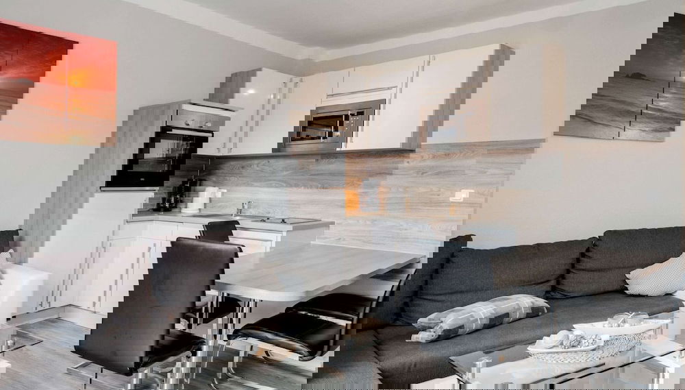 Vous vous sentirez comme chez vous dans cet appartement à l'ameublement personnalisé offrant une cuisine.