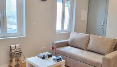 Cet appartement comporte 1 chambre, une télévision à écran plat, la climatisation et un salon.