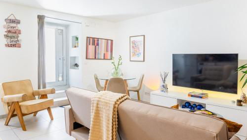 Cet appartement en rez-de-chaussée comporte 1 chambre, une télévision à écran plat, ainsi qu’une cuisine entièrement équipée avec un réfrigérateur, un four, un lave-linge, un micro-ondes et une plaque de cuisson.