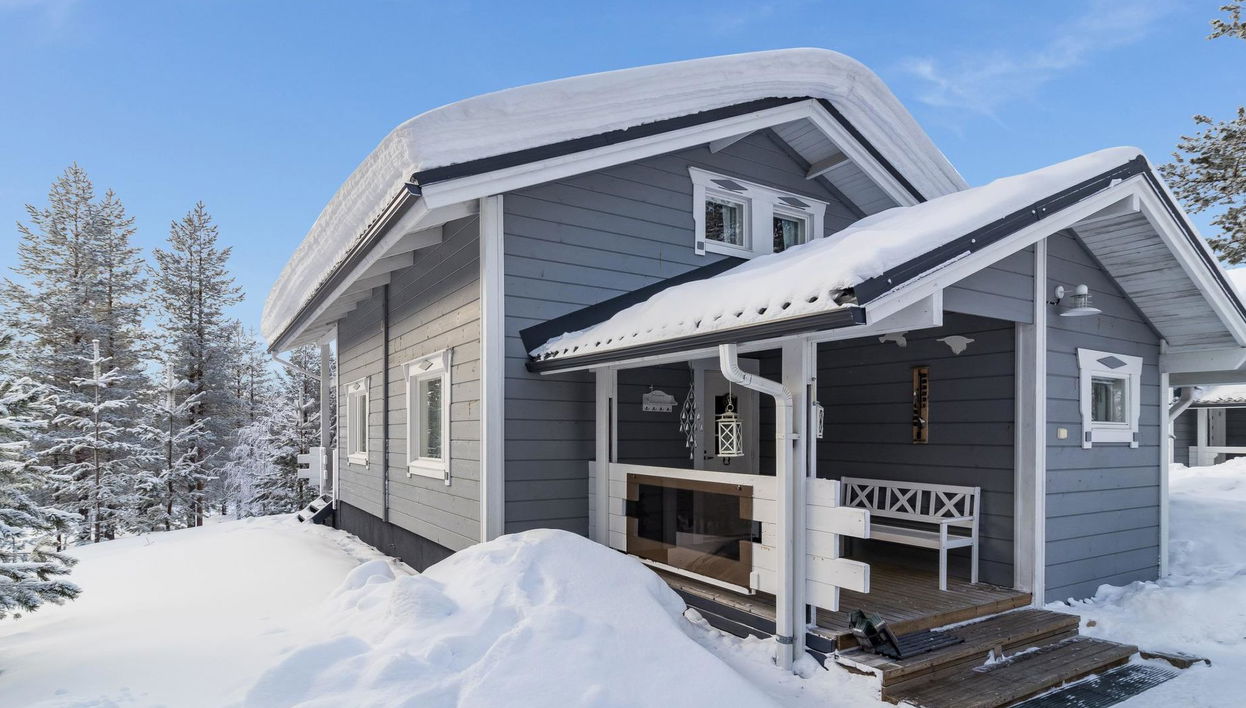 Spacious cabin with stunning view to the Pyhätunturi fells. Cross-country skiing tracks close to the cabin. Other services and ski slopes are less than 2km away. Cabin built in 2012.