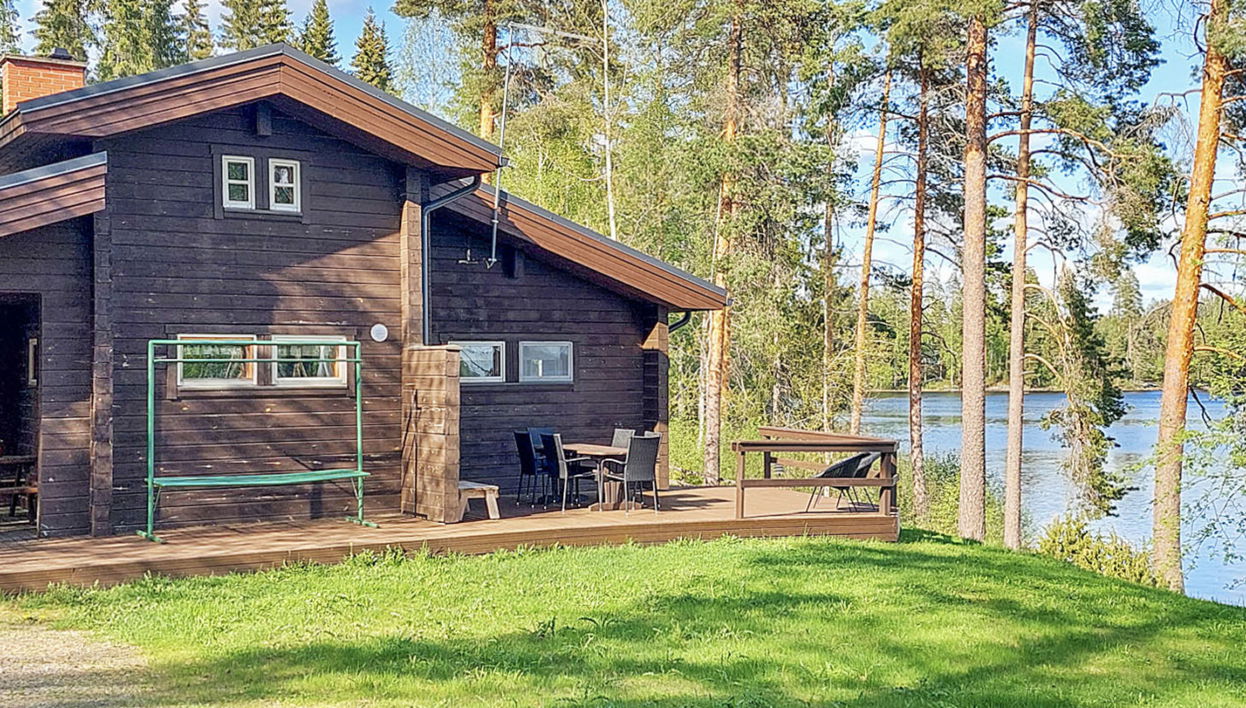 35 km à l'ouest de Jyväskylä, lac Karikkojärvi 20 m (longueur 5 km, largeur 600 m), fond morainique peu profond et sablé, propre bateau, jetée. Bâtiment en rondins 1987, cuisine, séjour avec cheminée et 2 canapés convertibles, chambre à l'étage avec 3 lits, alcôve avec une porte 1 lit, en grenier avec 2 lits et 3 matelas, dressing, salle d'eau, sauna (cuisinière électrique), toilettes rénovées en 2017, hall, porches ouverts. Toute la zone étendue (5 ha) est à la disposition privée des clients, feu de camp et salle à manger couverte pour 50 personnes. Griller uniquement en été. Idéal comme lieu de vacances pour plusieurs familles familières, beaucoup d'espace en bas. Grand sauna pour 10 personnes, escalier du sauna à l'embarcadère. Si vous prévoyez d'organiser des fêtes pour plus de 12 personnes, veuillez en convenir au préalable avec le propriétaire. 3 paniers de golf de frisbee dans la cour. Il n'est pas permis d'apporter un bain à remous louable au chalet. À proximité, par exemple Ancienne église en bois de Petäjävesi, classée au patrimoine mondial de l'UNESCO, à 4 km. Possibilités d'équitation à 7 km. Plusieurs terrains de golf à une distance de 30 à 75 km. Stations de ski: Himos 55 km, Laajavuori 30 km, Revontuli / Hankasalmi 75 km. Hôtels Spa: Laajavuori 30 km, Peurunka 54 km.