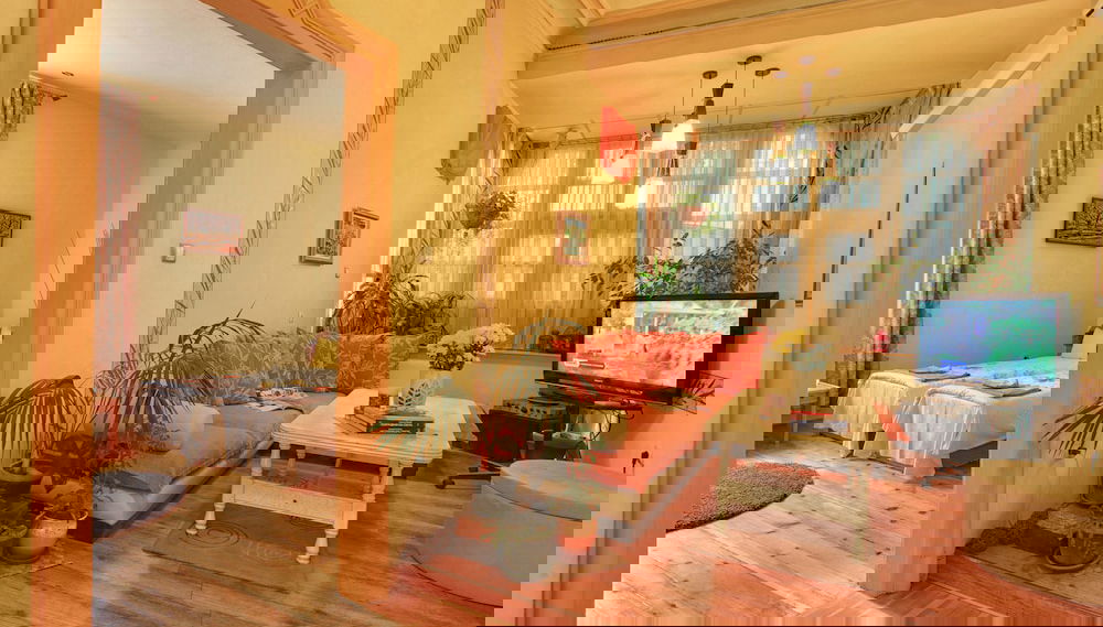 Vous vous sentirez comme chez vous dans ce cottage bénéficiant de la climatisation et offrant une cuisine dotée d'un réfrigérateur et d'un four. La télévision à écran plat avec chaînes par câble est l'assurance de soirées divertissantes, tandis que pour surfer des heures sur les réseaux sociaux, vous profiterez de l'accès Wi-Fi à Internet gratuit. Parmi les petits plus, vous trouverez sur place un coin salon séparé, un micro-ondes et un lit bébé (gratuit), disponible quant à lui sur demande.