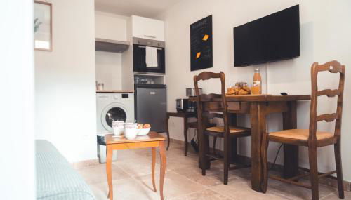 Cet appartement comporte 1 chambre, une kitchenette avec un réfrigérateur et un four, ainsi que 1 salle de bains avec une douche, un sèche-cheveux et un lave-linge. Des serviettes et du linge de lit sont à votre disposition.