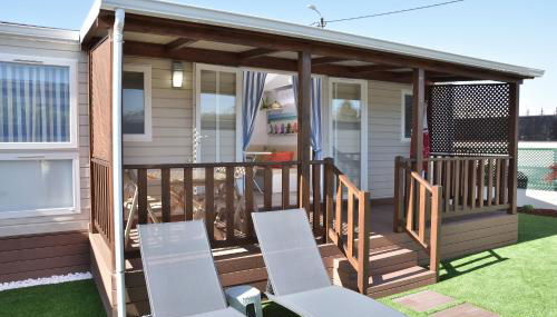Cette villa avec climatisation se compose de 2 chambres, d'un salon, d'une kitchenette entièrement équipée avec un réfrigérateur et une machine à café, ainsi que de 1 salle de bains avec une douche et un sèche-cheveux. Des serviettes et du linge de lit sont à votre disposition.