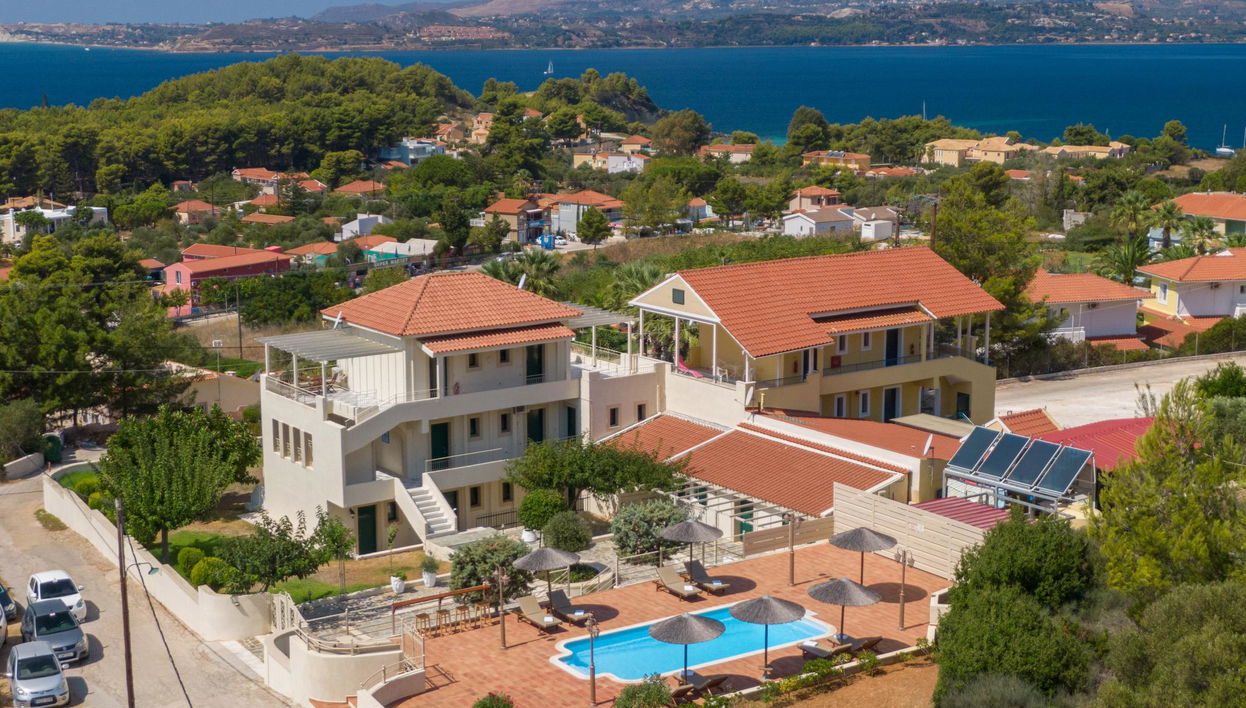 Questo incantevole complesso è composto da monolocali e si trova a Lassi, vicino ad Argostoli, il capoluogo dell'isola di Cefalonia.