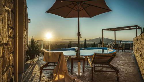 Violet Private Stone Villa mette a disposizione un alloggio con piscina all’aperto stagionale, giardino e sala comune a Lagópodhon e dispone di WiFi gratuito e vista sulla città.