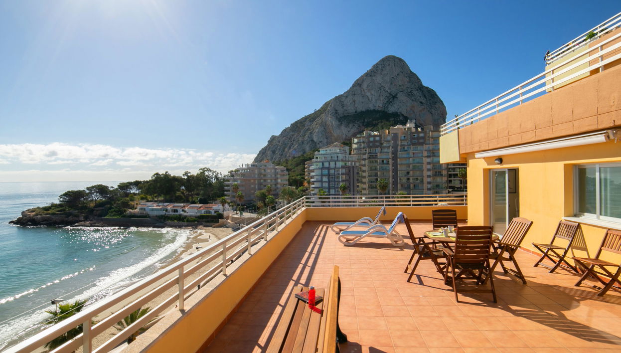 "Voramar", apt. di 4 locali 108 m2 al 6. piano. Arredamento confortevole e gradevole: soggiorno/sala da pranzo 20 m2 con TV (satellite), tv digitale, climatizzazione e riscaldamento di aria calda. Uscita sulla terrazza. 1 camera con 1 letto alla francese (150 cm, lunghezza 190 cm), doccia/WC, climatizzazione e riscaldamento di aria calda. Uscita sulla terrazza. 2 camere, ogni camera con 2 letti (90 cm, lunghezza 190 cm), climatizzazione e riscaldamento di aria calda. Piccola cucina (forno, 4 piastre cottura in vetroceramica, bollitore elettrico, forno a microonde, congelatore, macchina da caffè elettrica). Doccia/WC. Grande terrazza 84 m2. Mobili da terrazza, sedie a sdraio. Vista panoramica sul mare e sul paesaggio. A disposizione: lavatrice, ferro da stiro, asciugacapelli. Internet (wifi, gratis). Parcheggio nr. 11. Edif. Zafiro (1 Auto). AT-503918-A // Reg. Nr.: ESFCTU00000302900034205400000000000000000AT-503918-A8